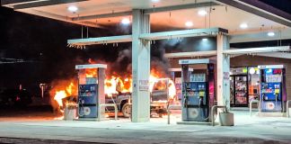Fire consumes vehicle at Mobil station