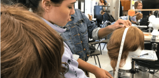 Cosmetology students work with Hair We Share