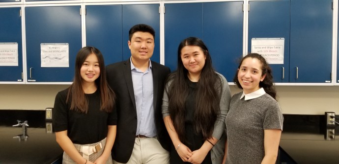 Fred, Emily, Susan and Vanessa all advanced by winning first place in their respective areas of research at this year’s Long Island Science and Engineering Fair, held earlier this spring.