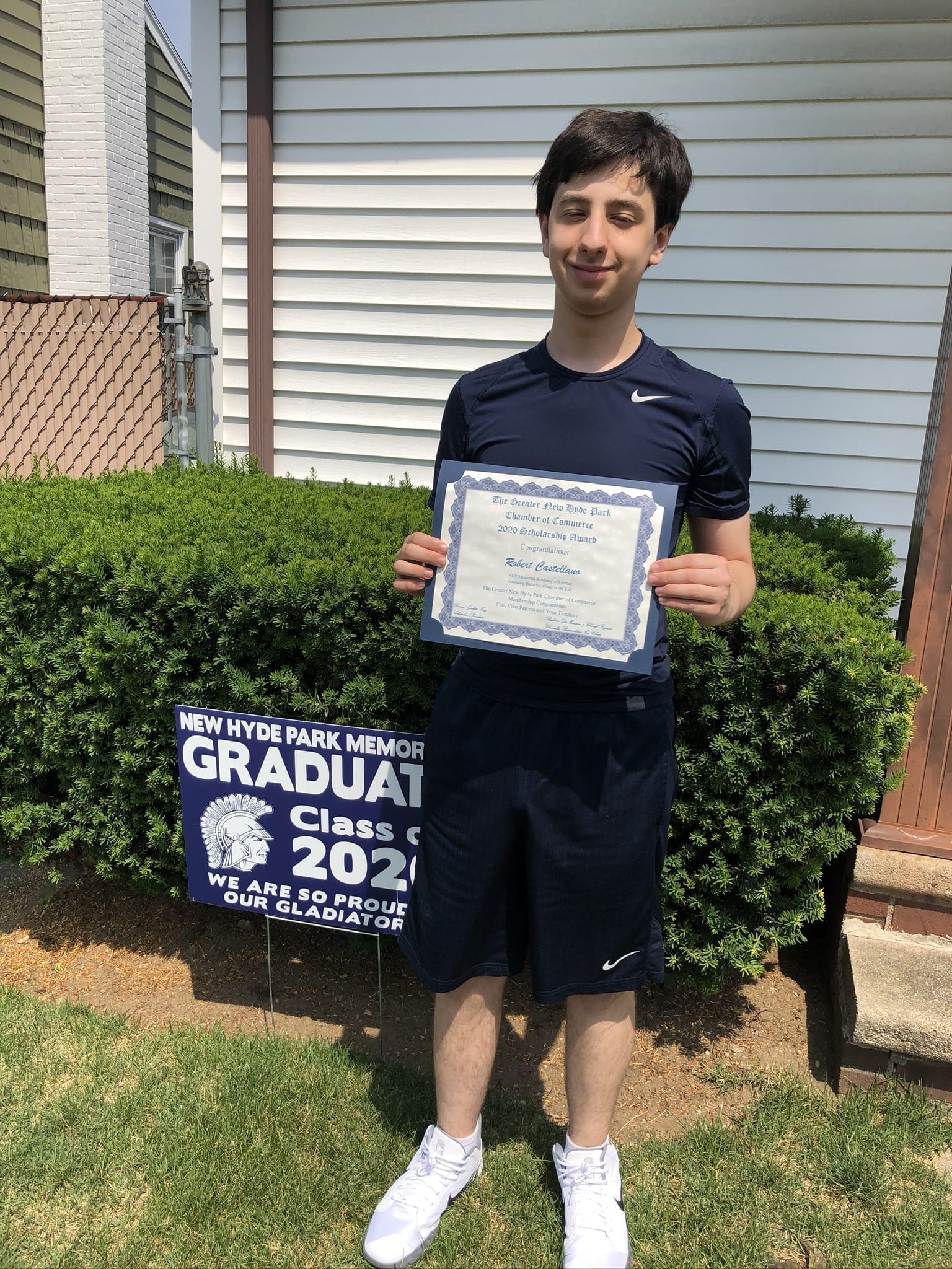 Academy of Finance Class of 2020 valedictorian Robert Castellano and salutatorian Frank Castellano were each presented the $500 Greater New Hyde Park Chamber of Commerce 2020 Scholarship Award in recognition of their hard work throughout their four years in the program, as well as attaining the first and second highest averages in their Academy of Finance classes.