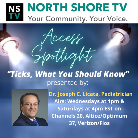 May is Lyme Disease Awareness Month – Check out “Access Spotlight: Ticks, What You Should Know” presented by Dr. Joseph C. Licata, Pediatrician, on Wednesdays at 1pm & Saturdays at 4pm EST, on NSTV Channels 20, Altice/Optimum and 37, Verizon/Fios, streaming from nstv.org.