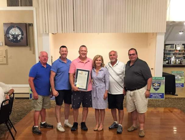 Most recently, the Dads’ Club was presented with a proclamation from state Sen. Elaine Phillips for all the work the Club does in the school but also in the community. In the photo from the left, Trustee Joe McMullen, Trustee James Carrick, President Gary Arman, Phillips, Past President Sal Balducci and Treasurer Howard Leeds.