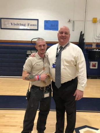 Once the donation total surpassed the $5,000 mark, Principal Faccio had agreed to have his head shaved. As the monies kept rolling in and the Dads’ Club made it over $7,500, custodian Mike Harsch agreed he would have his head shaven for the cause. His hair was well past his shoulder blades.