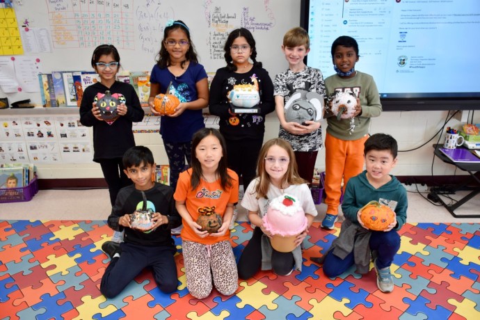 To celebrate Halloween and inspire creativity, Manor Oaks School third graders in Gina Gaudioso and Lisa Kay’s classes decorated pumpkins and displayed them from Oct. 27-28 for a schoolwide Pumpkins on Parade.