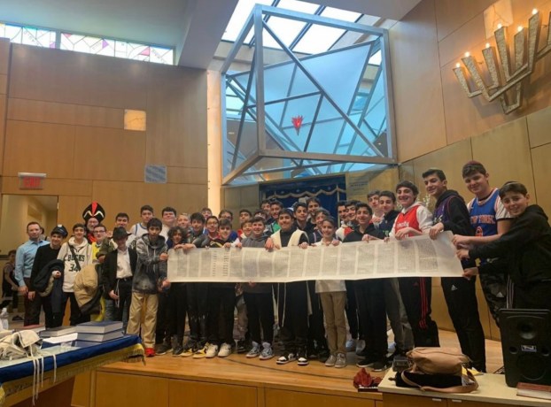 Rabbi Dr. Jeffrey Kobrin, Head of School of the North Shore Hebrew Academy (NSHA) announced at the beginning of the student-led Megillah Reading on Purim Day, that the Great Neck school had purchased a new Megillah (Scroll of Esther) to be named the “Dr. Paul Brody Megillah”. The new scroll will be used every Purim when the students chant the Megillah for the entire Middle School, their parents, grandparents, siblings and faculty members, in a program that Dr. Brody, whose daughters attended the Academy, instituted in 2002.