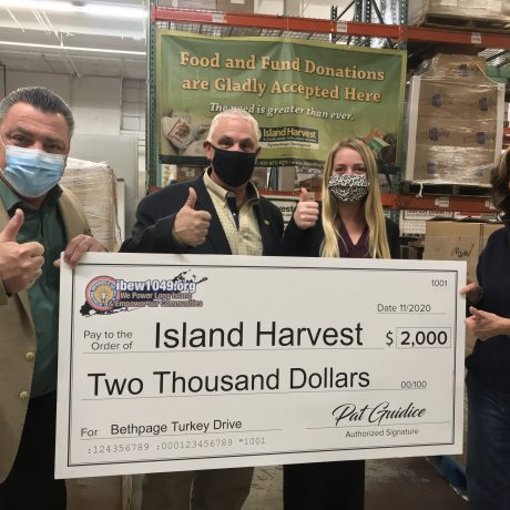 As part of its charitable giving initiatives, the International Brotherhood of Electrical Workers (IBEW) Local 1049 donated $2,000 to Island Harvest to help support the food bank’s essential food collection initiatives as the number of food insecure Long Islanders continues to rise.