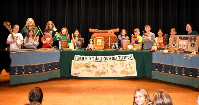 On Oct. 14, 2022, fourth graders had a special treat when guests, including Ms. Maddi Cheers from the Journeys into Native American Indian Territory, discussed the traditional culture, customs and government of the Eastern Woodland native people. She brought a table full of Native American artifacts, including a mini-longhouse, clothing made of animal skins, jewelry, tools, pottery and musical instruments.