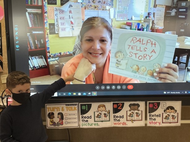 Garden City Park School kindergartners in Kristen Guarasci’s class enjoyed a virtual visit from New Hyde Park-Garden City Park District Literacy Coach Vivian Sirakis on Jan. 6.