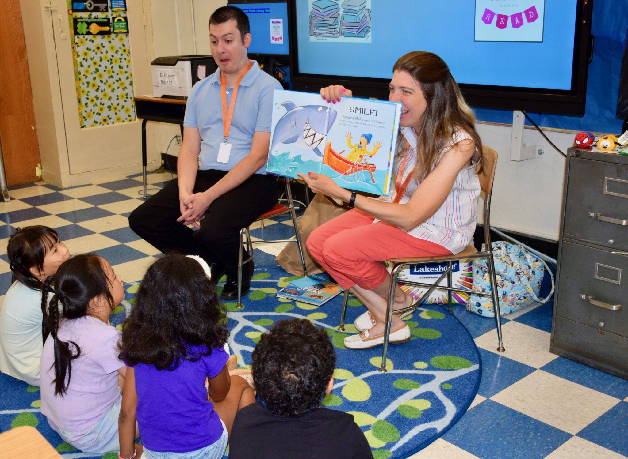 read aloud “The Three Little Fish and the Big Bad Shark” and “Smiley Shark.” As part of the
