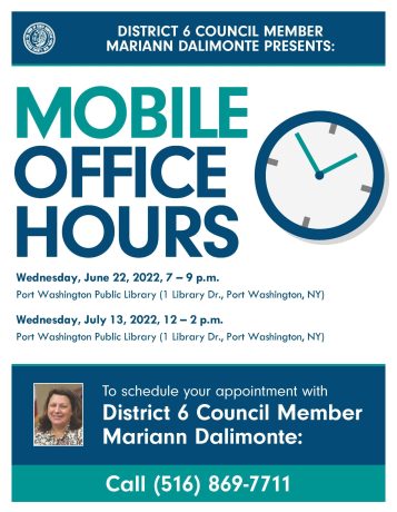 North Hempstead Council Member Mariann Dalimonte is reminding the community of her mobile office hours for the residents of District 6. This initiative first began in 2021 to allow residents to connect directly with her on issues that matter to them.