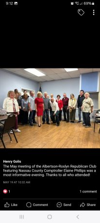 Albertson-Roslyn Republican Club archive.theisland360.com 2 years ago The May meeting of the Albertson-Roslyn Republican Club was a most informative meeting featuring our guest speaker, Elaine Phillips, Nassau County Comptroller. Thanks to all who attended.