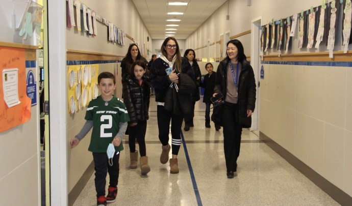 All three Roslyn Elementary Schools—Heights, East Hills and Harbor Hill—welcomed parents back into their buildings for group tours in March and April. Parents were thrilled for a chance to see the library, cafeteria, and special area rooms. For some, it was the first opportunity to see the inside of their children’s schools since the pandemic began. The group tours were led by building principals Mary Wood, Sherry Ma, Nichole Lewis, Michelle Hazen, and Justin Gabrus. “We greatly appreciate your support over the past months as we navigated guidelines and mandates to keep our students and staff healthy and safe,” said building administrators in a letter to parents, along with a link to select an appointment time.