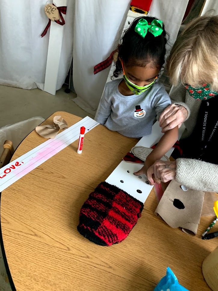 Kindergartners at Hampton Street School in the Mineola Union Free School District took part in the annual snowman project, creating a winter keepsake for their parents.