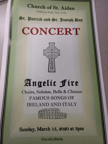 In celebration of the upcoming holidays St. Patrick’s Day and St. Joseph’s Day, the Church of St. Aidan will be holding a free-will offering concert on Sunday, March 15, at 3 p.m.