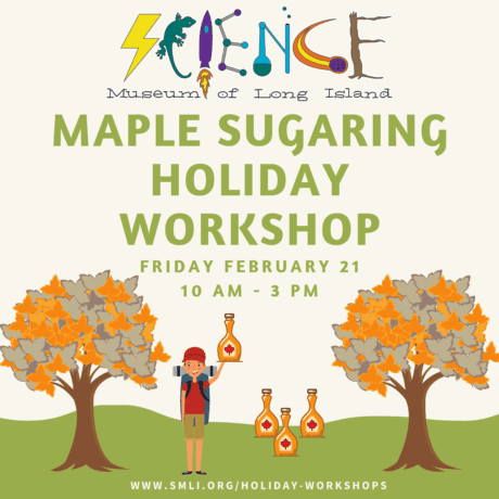The Science Museum of Long Island will be kicking off the maple sugaring season with this workshop. Kids will learn how sap is collected from a tree and how farmers turn that into maple syrup. It’s recommended that parents or guardians drop off their kids with a packed lunch and have them dressed for the outdoor weather. The event is $75 per child for the public or $65 for museum members.