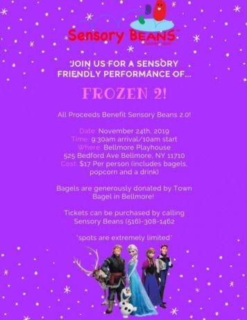 The Bellmore Playhouse will be hosting a screening of “Frozen 2” for children with special needs. The lights will be kept on and the audio will be low in order to make the kids feel comfortable. Tickets are $17 per person and include complementary bagels, popcorn and a drink. Seating begins at 9:30 and the film starts at 10:00.
