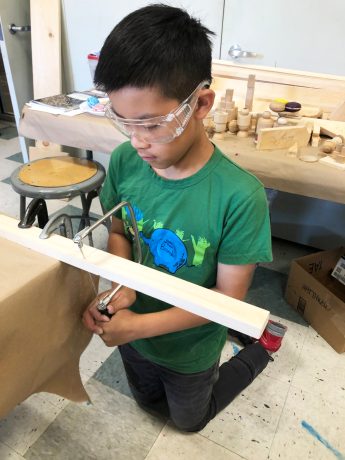 Karen Hubela, the instructor of the wood workshop, explained, “the One Board Minimalist Chair gives practical knowledge with a creative aspect. Woodworking builds persistence, concentration, and use of new muscles.” Intern Theo Chang said about last year’s class, “it was an opportunity to be very creative while designing their chairs, for example, there were a cupcake, spaceship, and chessboard chairs.”