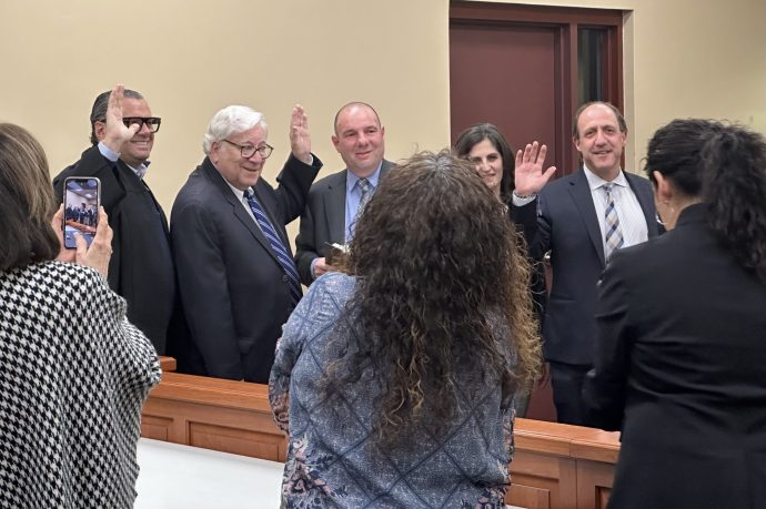 The four village officials took the oath of office in front of Town Councilman Peter Zuckerman, the public and many of the officials’ family members at their annual organizational meeting on April 3.