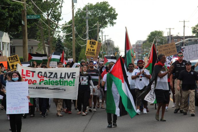 At the demonstration for the Palestinians, Toufique Harun, an organizer with Muslims for Progress, gave his reason for attending the march, saying though he doesn’t want Israelis to die, he also doesn’t want Palestinians to die. “We reject this notion that human rights and the existence of one people requires taking away the rights and existence of other people,” he said.