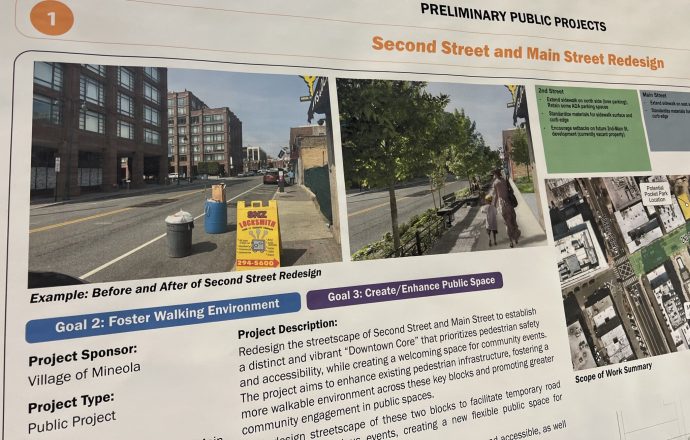 “Mineola will be a thriving downtown destination for residents, workers, and guests, with vibrant shops, restaurants, and unique spaces to gather for entertainment and community events,” the NYF downtown vision statement, which was created with LPC’s guidance, states. “As the official Seat of Nassau County and a central Long Island hub for employment and transit, downtown Mineola is poised to become the ‘go-to’ place that serves all local needs while attracting visitors into its safe, pleasant, walkable, and welcoming community.”