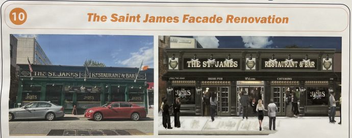 The projects presented at the second workshop included Second Street and Main Street redesign, sponsored by the village; train station connectivity improvements, sponsored by the village; wayfinding/signage and streetscape enhancements, sponsored by the village; public mural on the pavilion parking garage wall, sponsored by the village; Village of Mineola marketing and branding study, sponsored by the village; Century Lounge in The Bridge, sponsored by Ross Levine; 94 Main St. Renovations, sponsored by Isabel Garcia; Second-Main Street: Mixed-use development, sponsored by ESHCO Real Estate and Mgmt. Inc.; The St. James facade renovation, sponsored by Peter Viscardi and Will Elvert; and 199 Jericho: Mixed-use development, sponsored by Mineola 199 LLC.