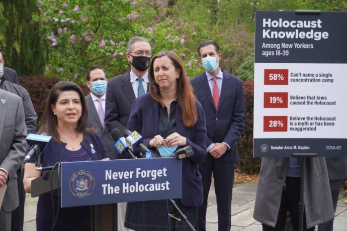 The bill, sponsored by Sen. Anna Kaplan (D-North Hills), permits the state’s commissioner of education to analyze what school districts throughout the state are offering Holocaust instruction. Section 801 of the state’s education law mandates the teaching of citizenship, patriotism and human rights issues “with particular attention to the study of the inhumanity of genocide” in schools.