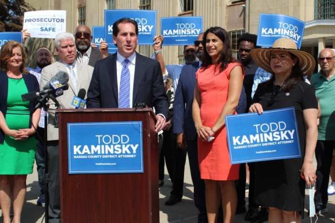 In June, the Nassau County Democratic Party selected Kaminsky to be its candidate for district attorney. Singas left the position open after her appointment to the New York Court of Appeals.