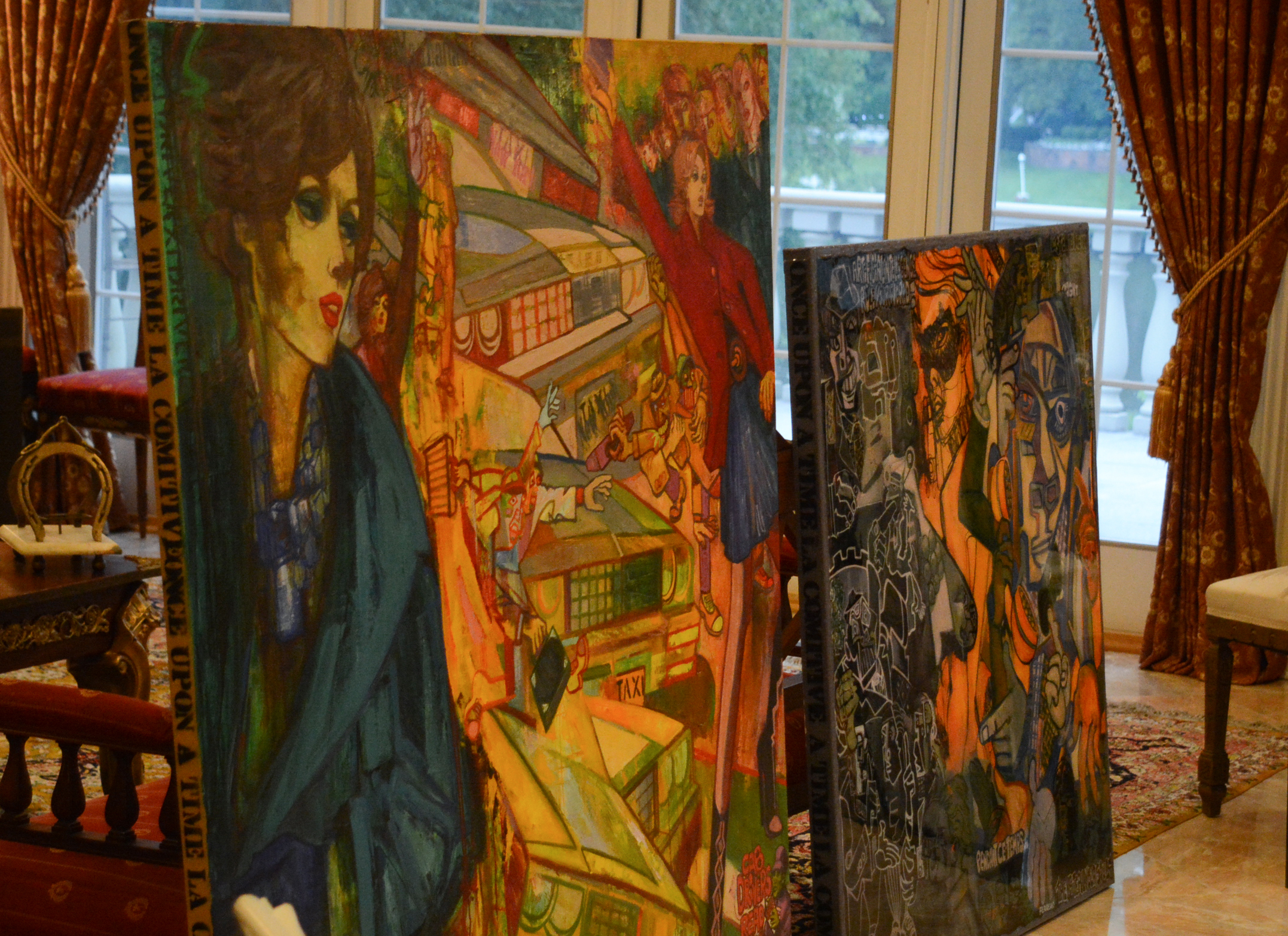 They also saw the exhibited work at its heart: over a dozen paintings for sale by Ferrero, a pioneer of the “storytelling art” movement that blends together artistic styles to create a fictional story.