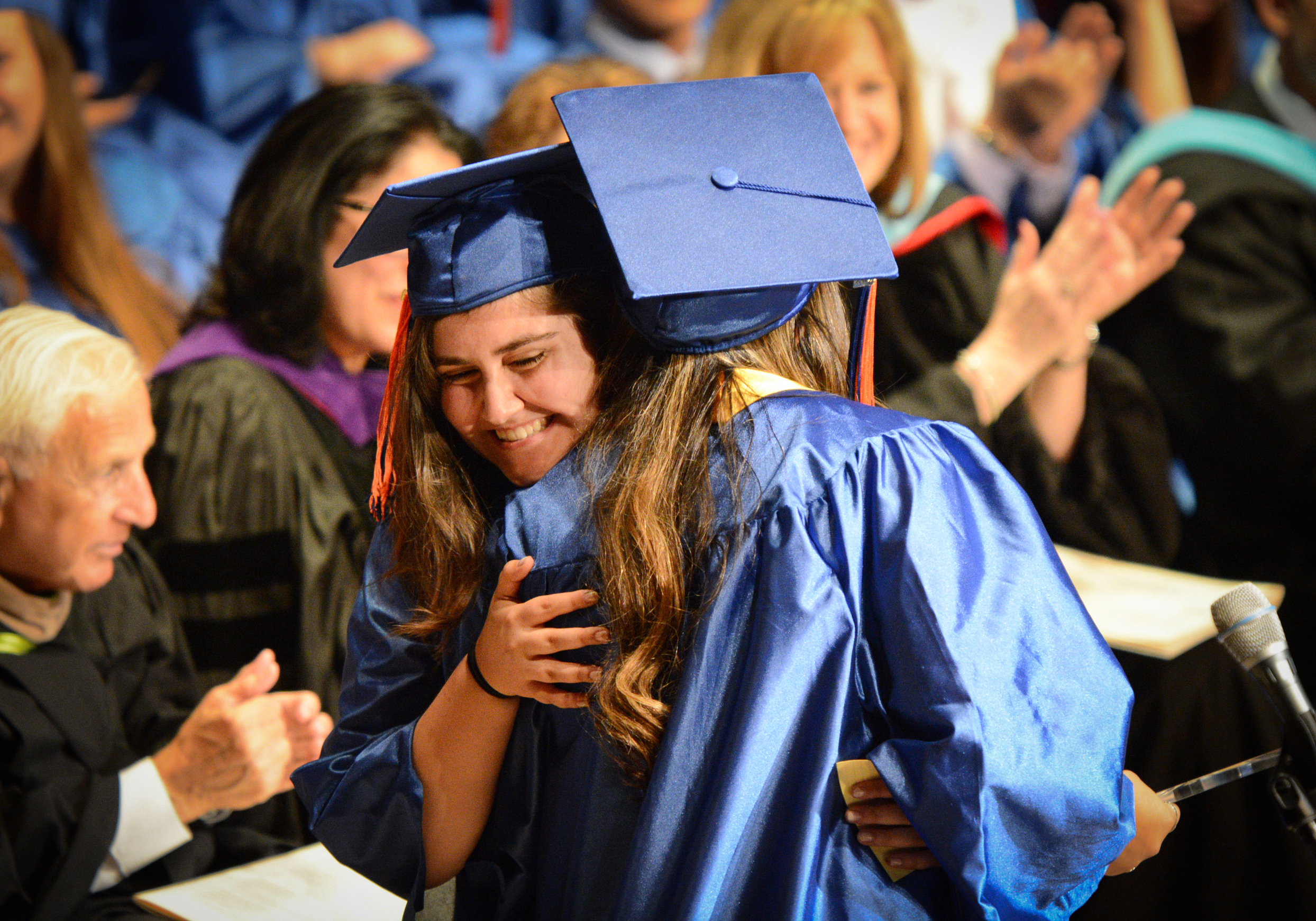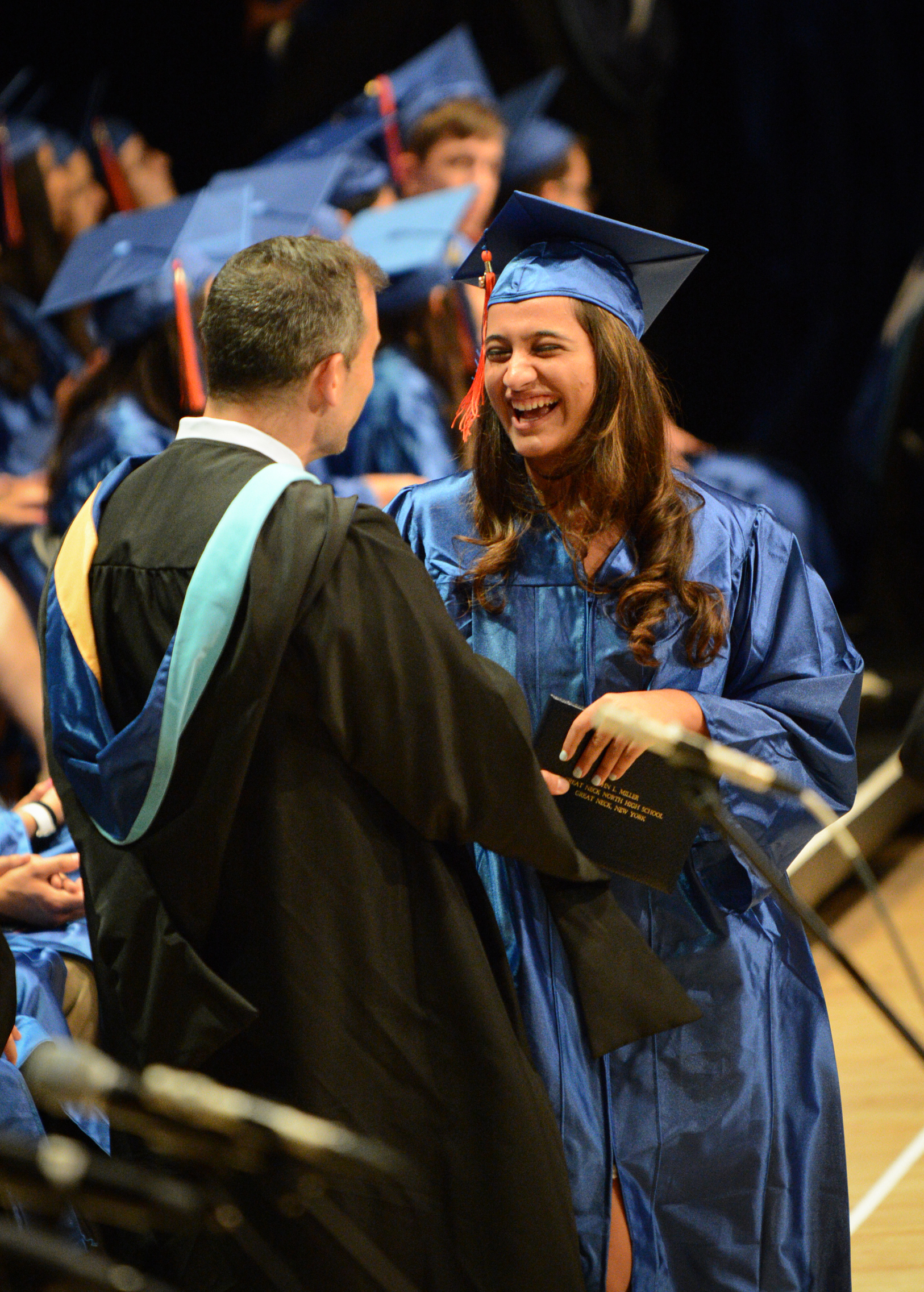 Assistant Principal Ronald Levine presented the Alan L. Gleitsman Award, which recognizes academic excellence, involvement in student activities, and a dedication to the school and well-being of colleagues, to Hawa.