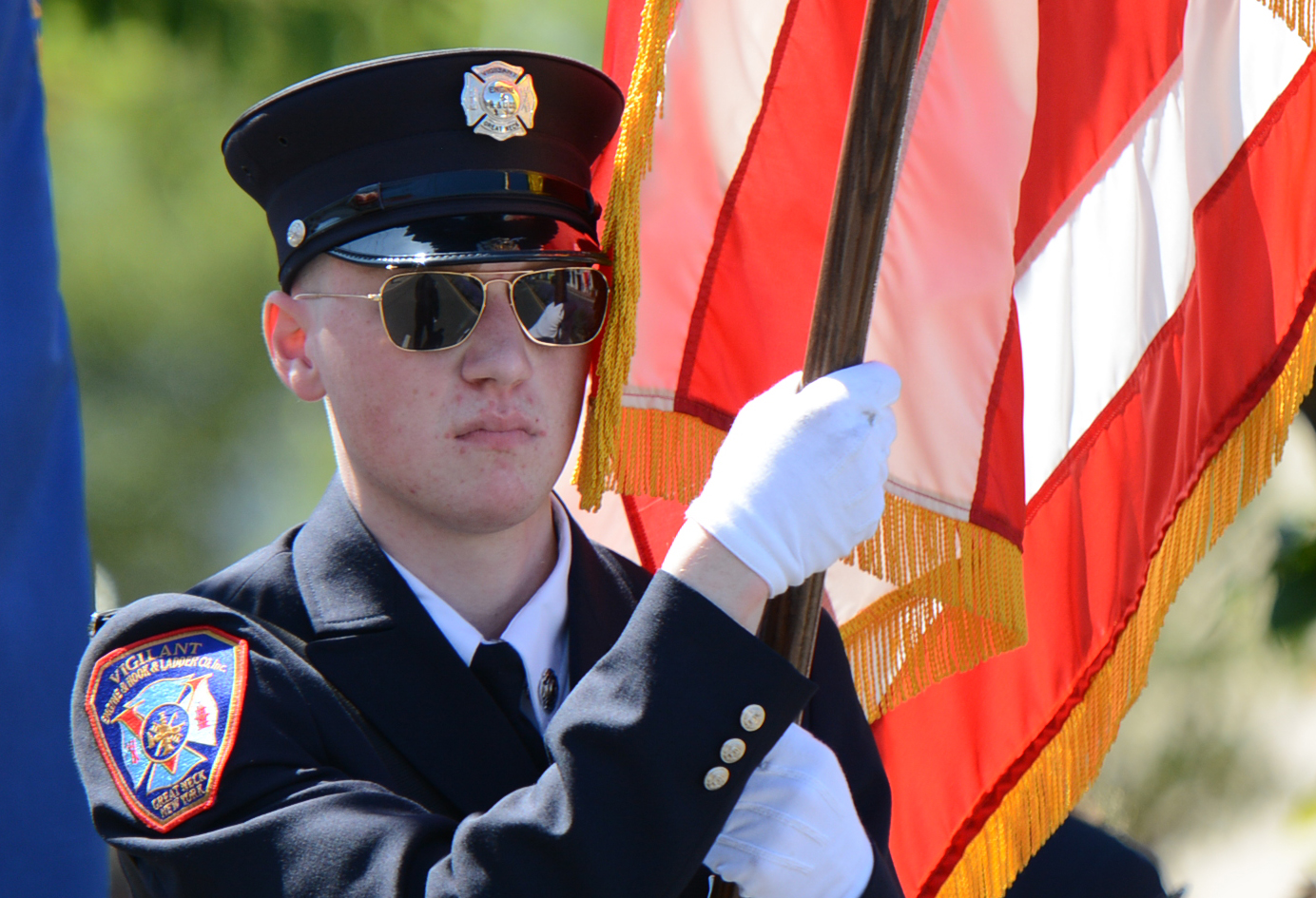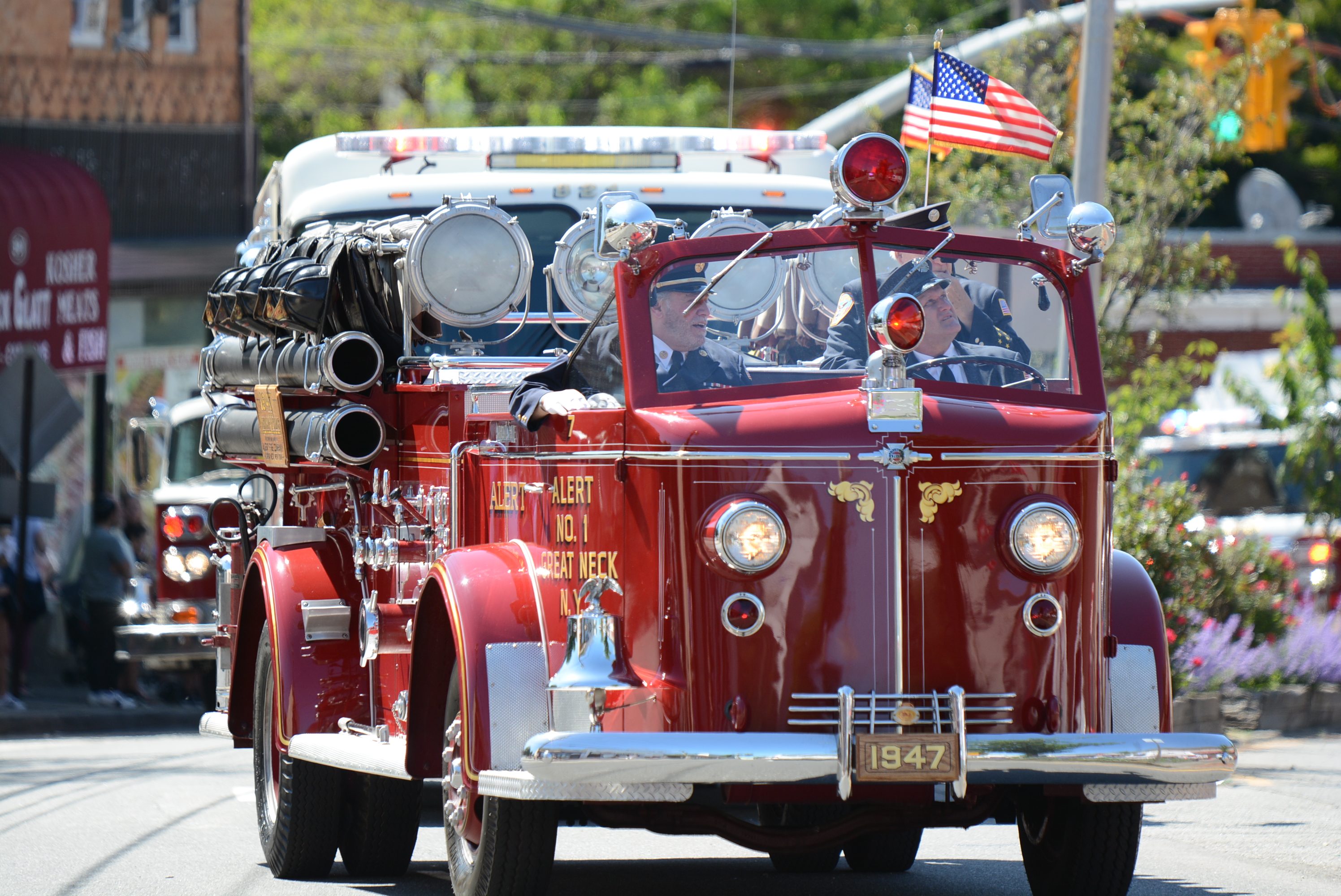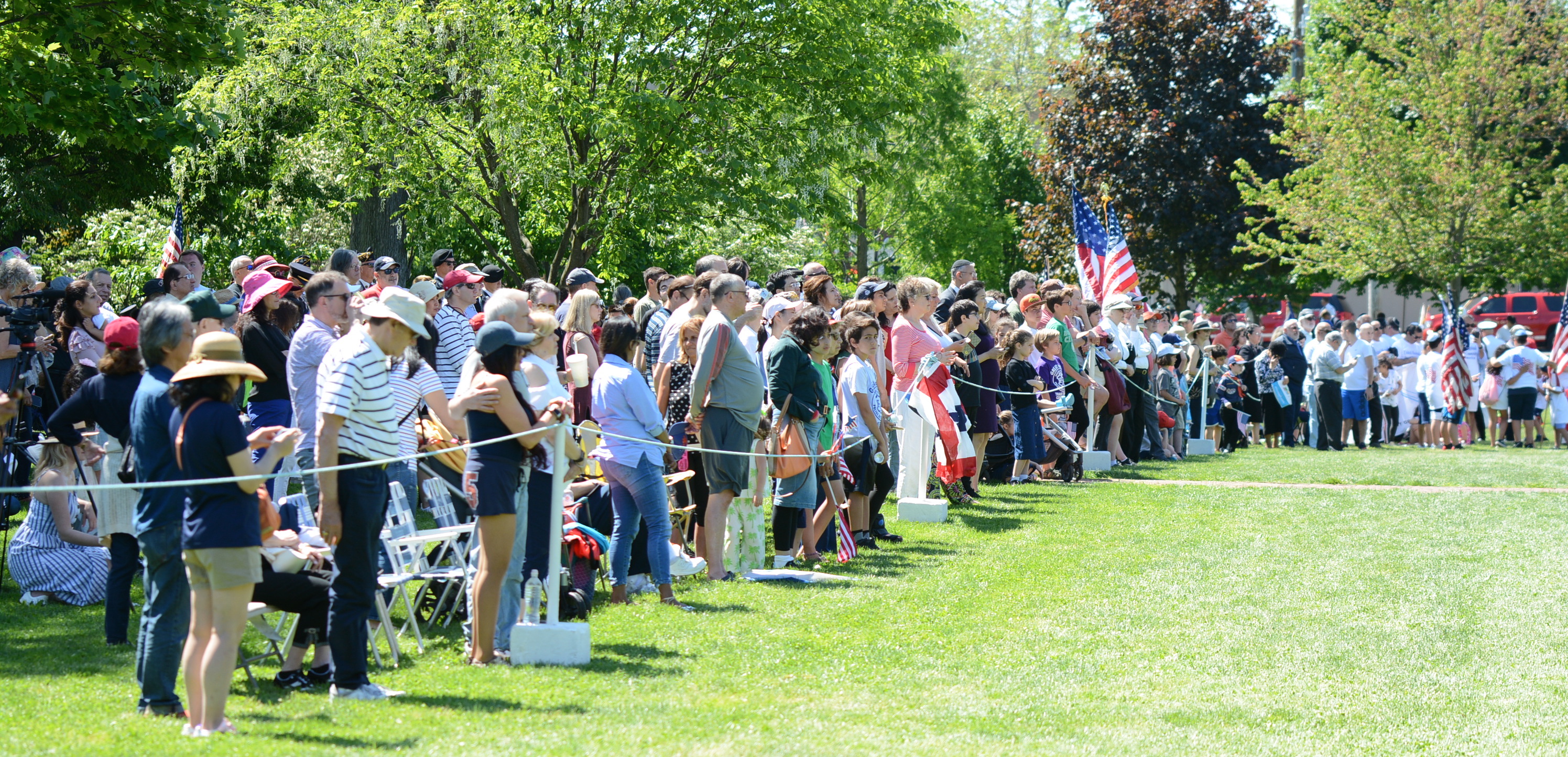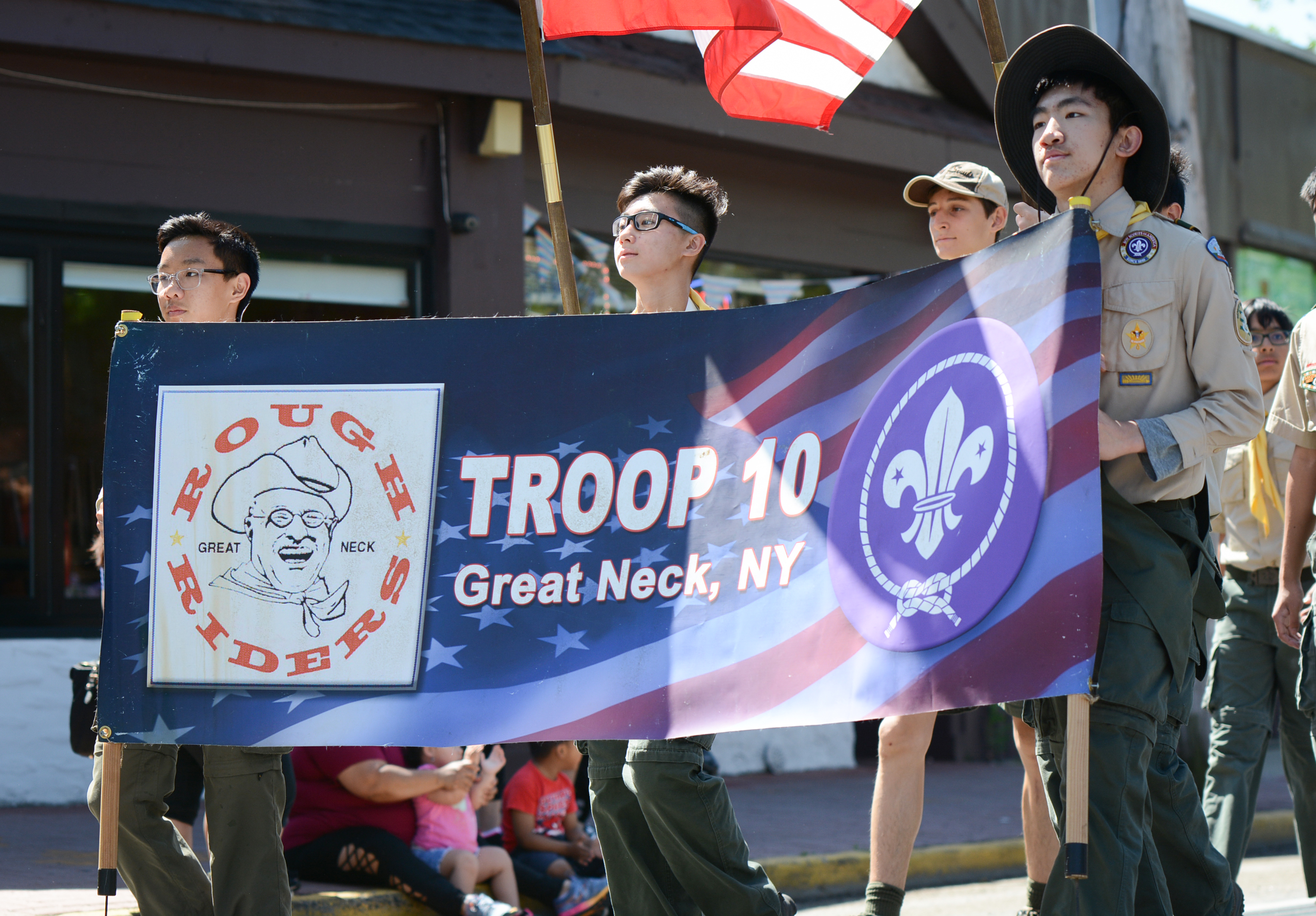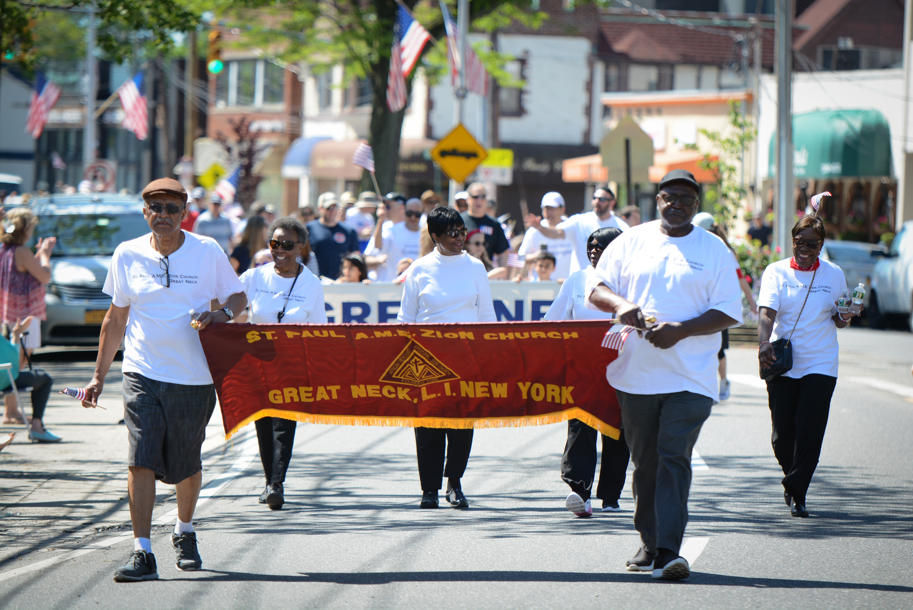 Midshipmen from the U.S. Merchant Marine Academy, veterans groups, Scouts, first responders and elected officials marched up Middle Neck Road, playing tunes, greeting crowds and waving flags. The march stopped at the Village Green for a Memorial Day ceremony to honor veterans.