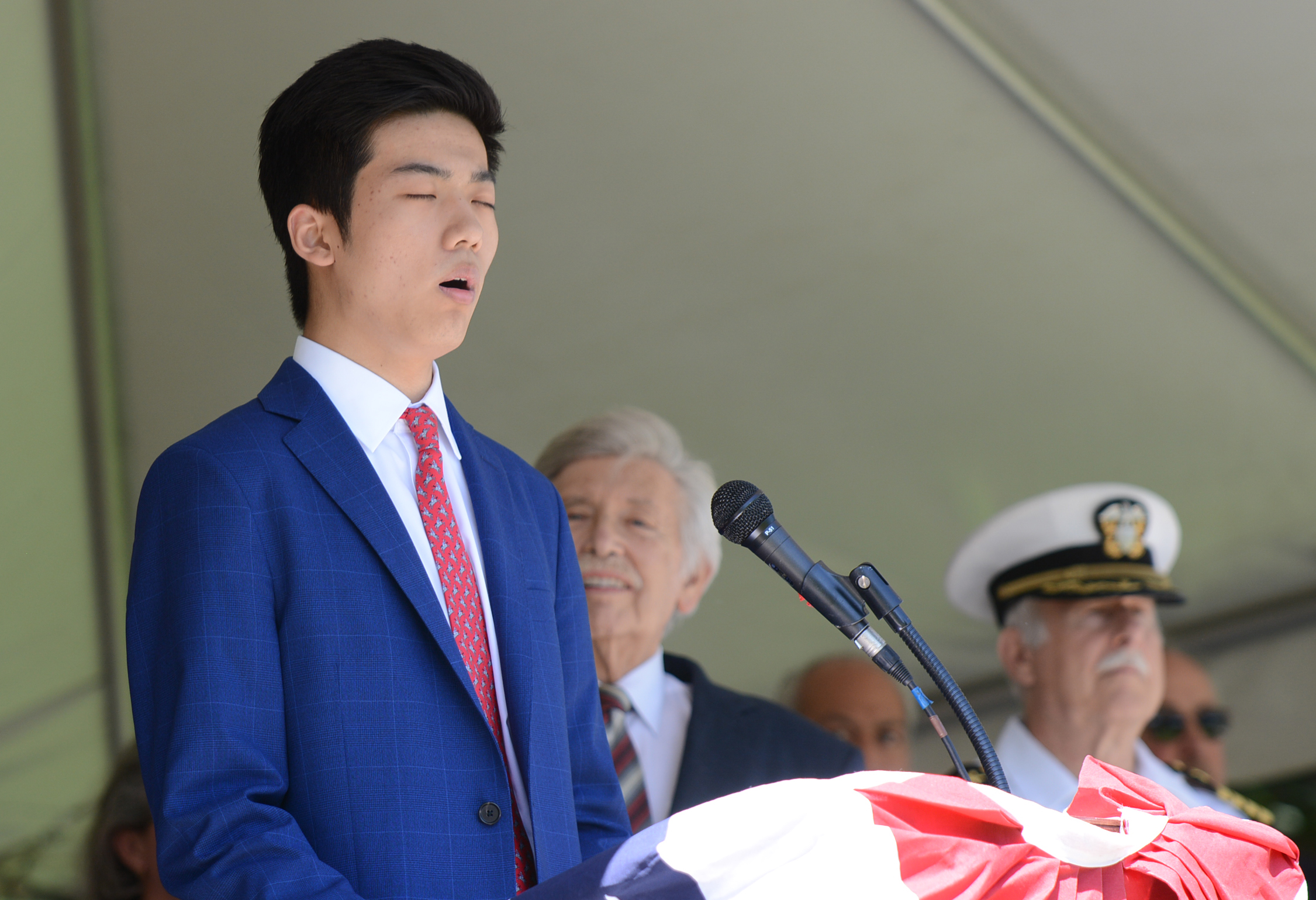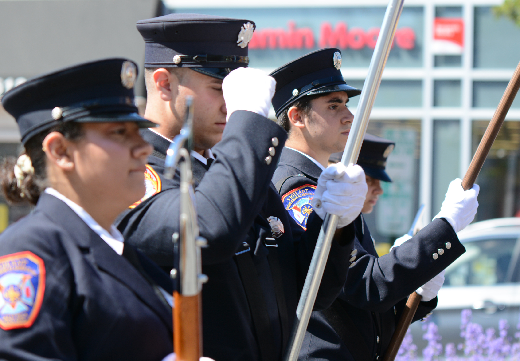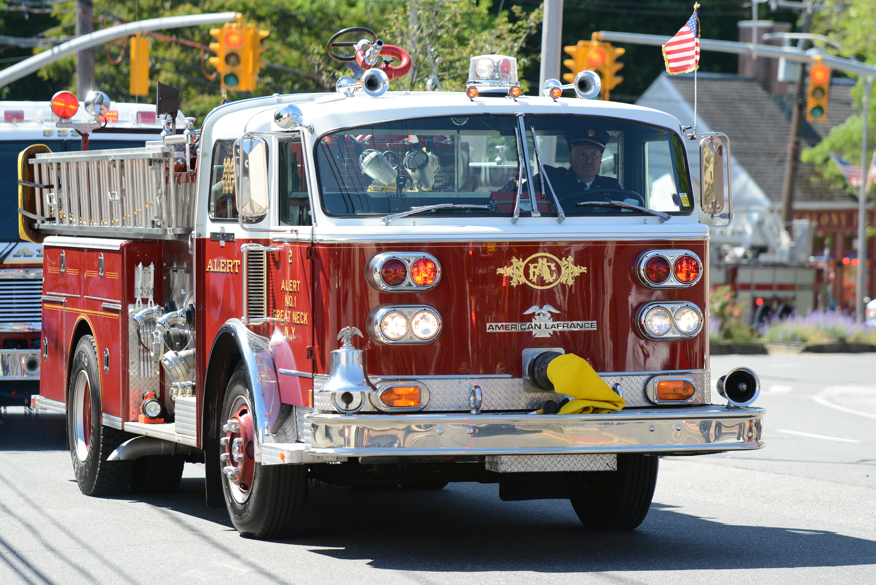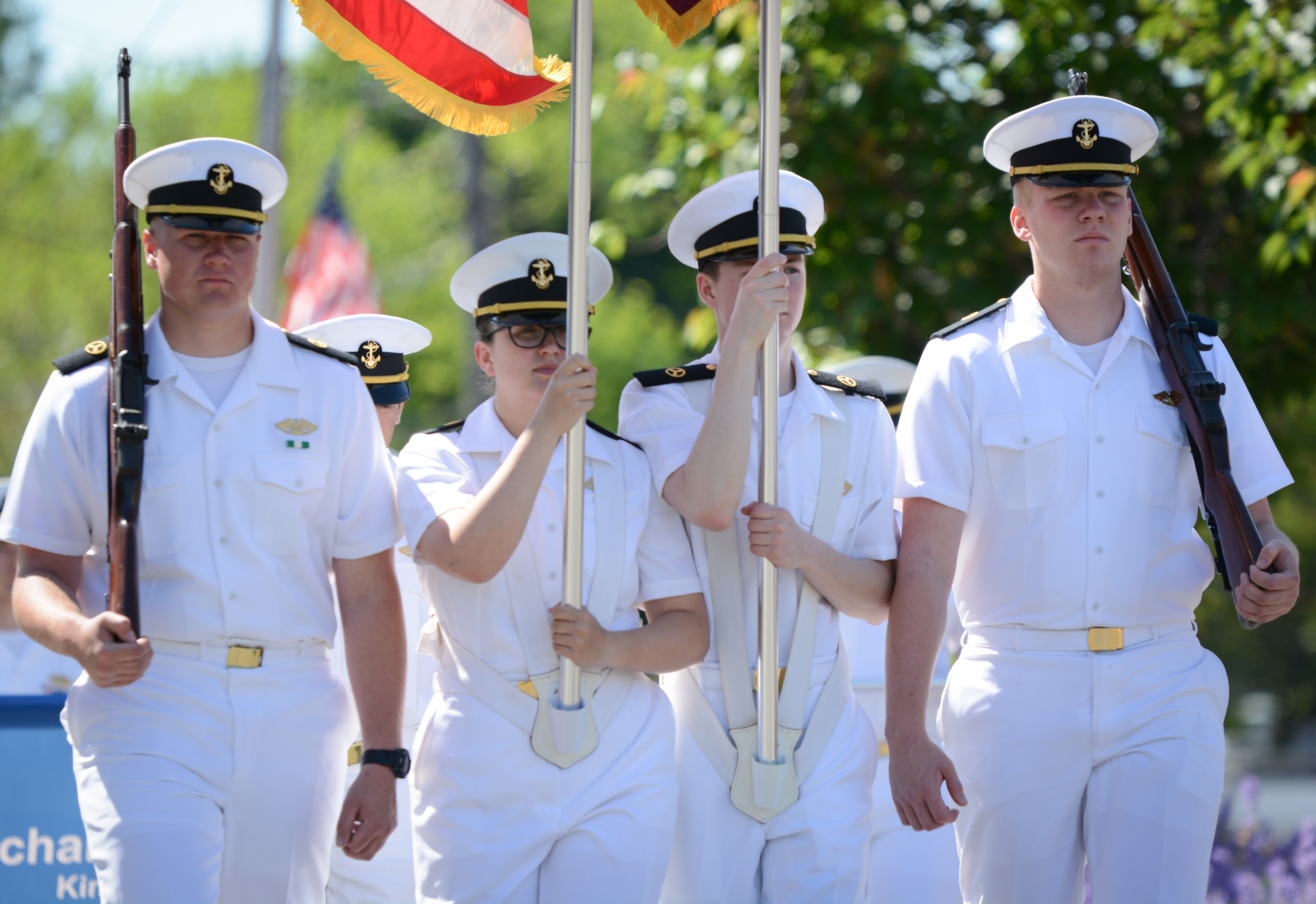 Midshipmen from the U.S. Merchant Marine Academy, veterans groups, Scouts, first responders and elected officials marched up Middle Neck Road, playing tunes, greeting crowds and waving flags. The march stopped at the Village Green for a Memorial Day ceremony to honor veterans.