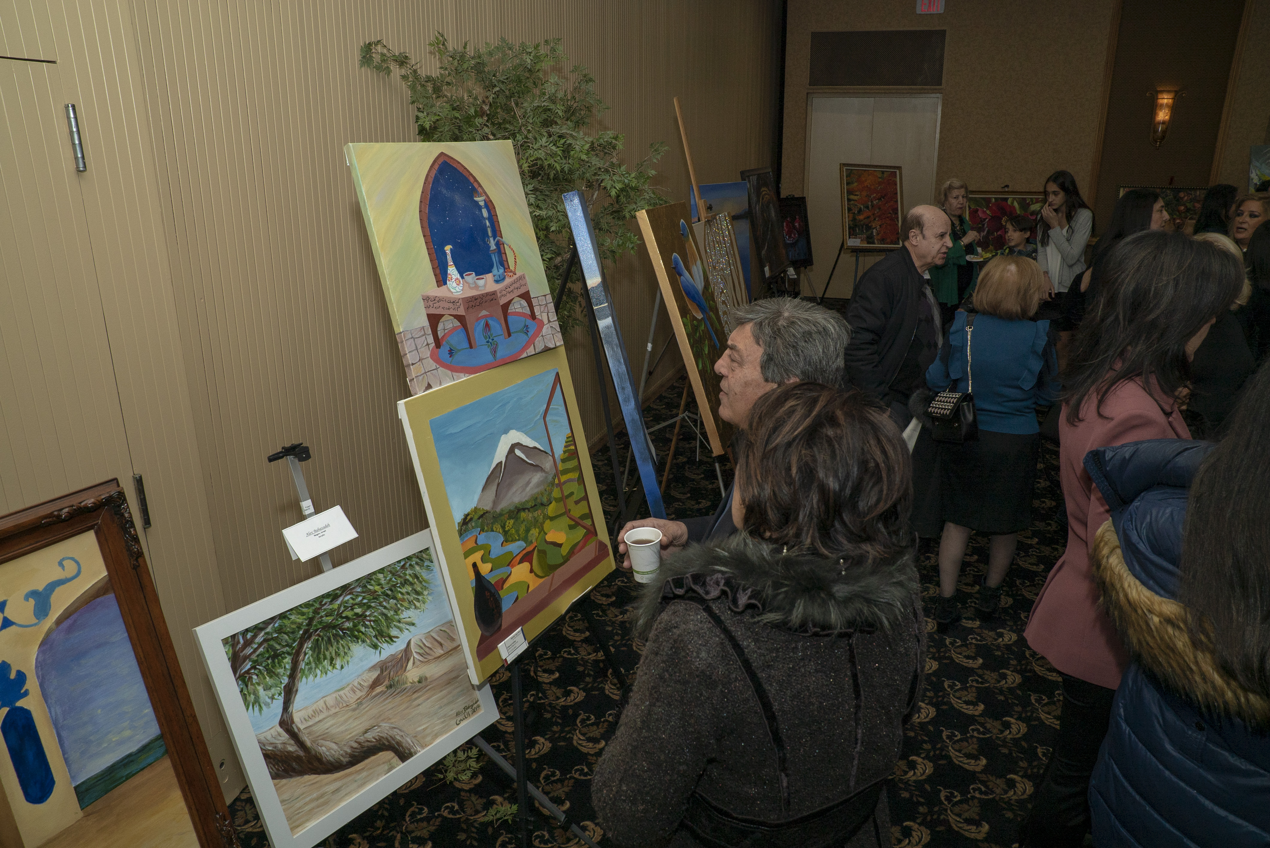 Several artists displayed their works, including Jalil Harroni, a sculptor who created art with seashells, and Roya Shams Diba, whose paintings touch on various aspects of Persian culture.