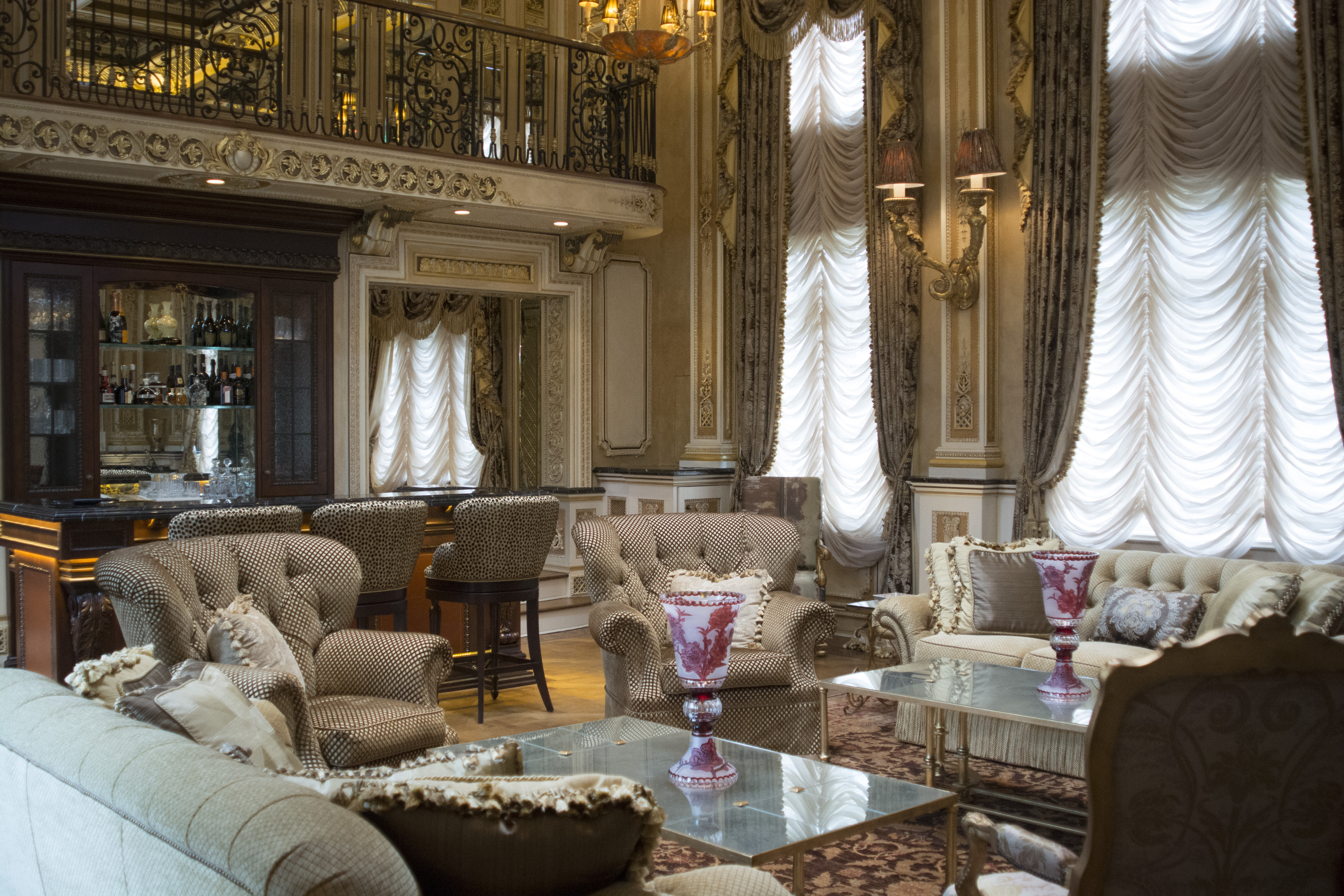 This room, adorned with silk drapes, a custom bar, two chandeliers, balcony and other features, was one of many rooms in the royalty-styled mansion. (Photo by Janelle Clausen)