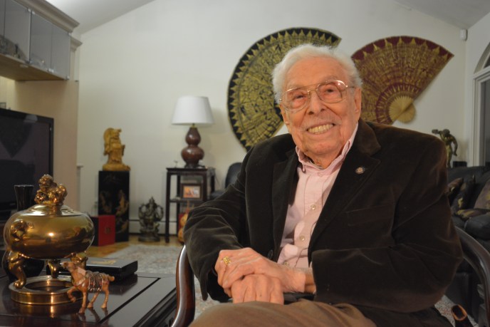 His house in Muttontown is ornamented with Asian art, which he says he’s been collecting since the 1950s.
