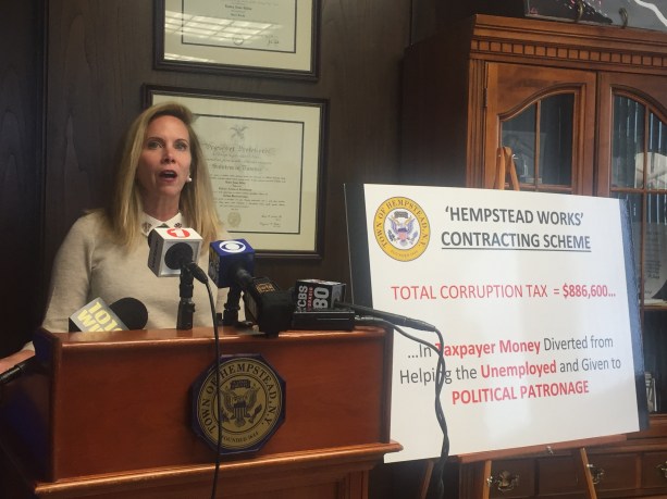 The news conference came after a report by Newsday that in 2017 Ana-Maria Hurtado, then the commissioner of Hempstead’s Department of Occupational Resources, signed a two-year contract with Alcott HR. The contract provided for extra staff, and Hurtado joined the company after retiring in July 2017. Hurtado and two other former town employees, Scott Surkis and Edward Kenny, now work at the company.