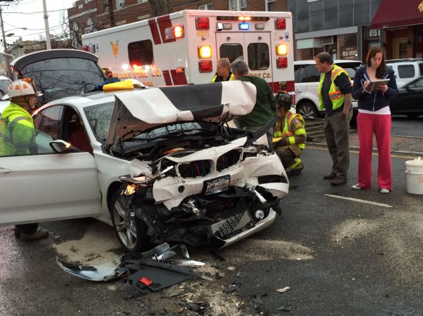 Nassau County police said that at about 5:45 p.m. Tuesday a bus was stopped on Middle Neck Road near Fairview Avenue when the car drove into the back of the bus.