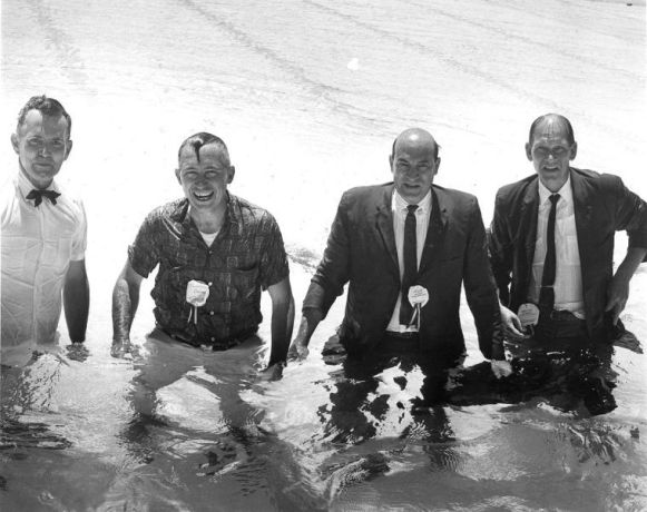 Fay said he didn’t wear his watch and surprised those present by doffing his suit pants to reveal bath trunks.