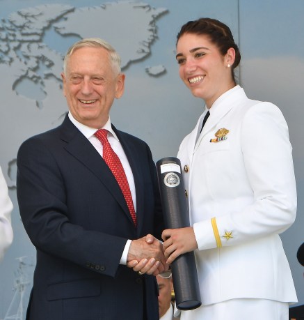 In addition to Mattis, the graduates were addressed by Rear Adm. James A. Helis, the academy superintendent, and distinguished alumni speaker Capt. Nancy Wagner, who was part of the first class at any federal service academy to admit women.