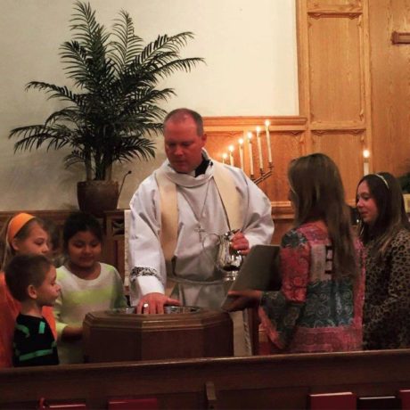 Herbst said he gives the children a preview of the gospel message and a small gift on theme with the message, which helps him build a relationship with the younger congregants that was missing from his childhood parish.
