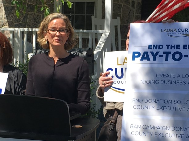 She would also lobby the county Legislature to create a list of people and companies with business before the county, and limit them to giving $500 to county legislative campaigns and $1,000 to campaigns for countywide offices.