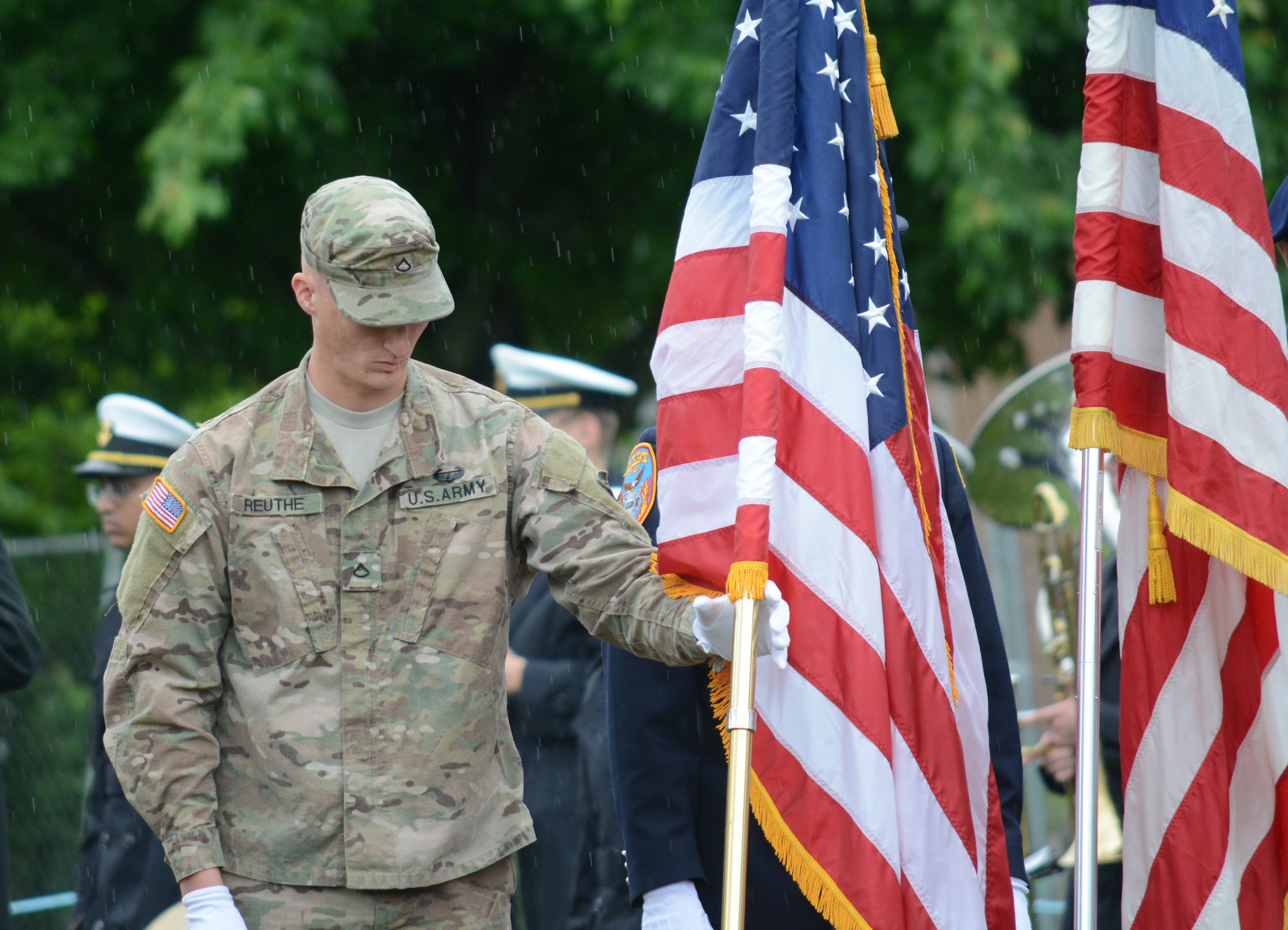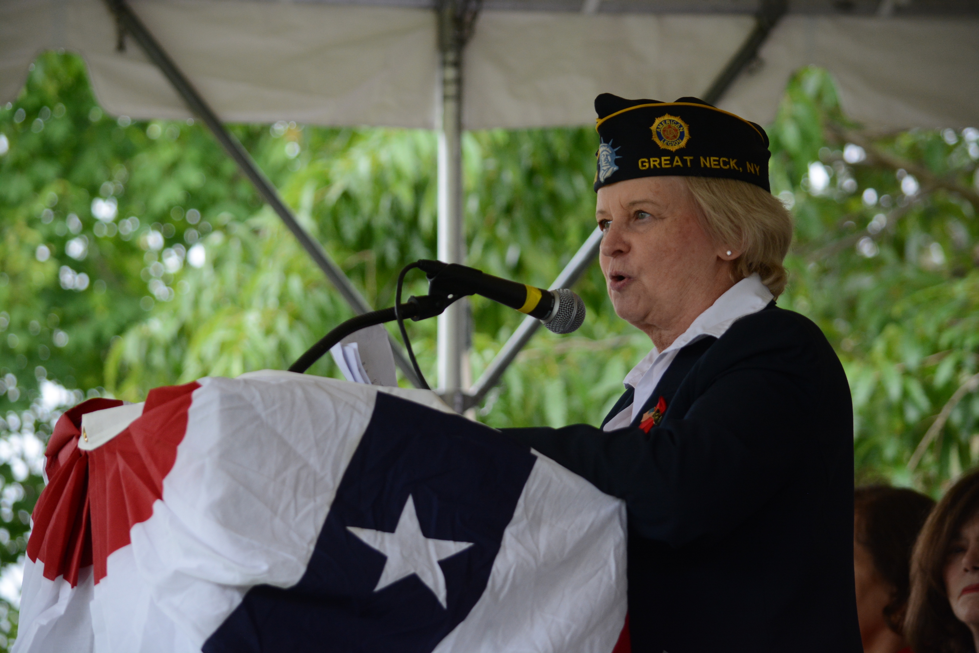 While sometimes jokingly referred to as the “Great Neck Memorial Annual swimming meet” because of the rain by Parade Committee Chairperson Louise McCann, she emphasized the ceremony’s importance.