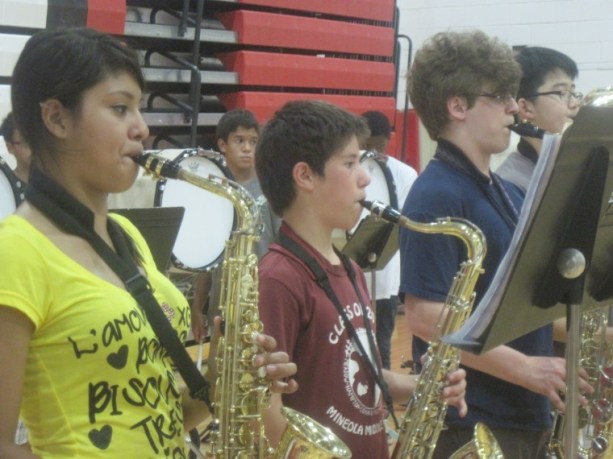 The varsity football regular season starts next month, but the Mineola High School marching band is already getting close to mid season form, having begun practicing in May and undergoing its most intensive week of practice upstate this week.