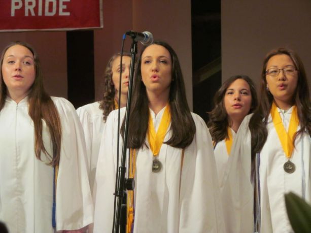 A quartet of graduates including Kathryn Barnwell, Rebecca Bastos, Michelle Senra and Bonnie Small also sang “Unwritten” by Natasha Bedingfield.