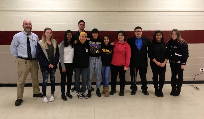 Members of the Sewanhaka Central High School District Rifle Team are pictured with coach Robert Marino. (Photo courtesy of the Sewanhaka Central High School District)