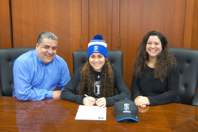 The Wheatley School senior Samantha Palazzolo recently signed a letter of commitment to continue her academic and athletic career at Bentley University, in the Northeast 10 Conference.