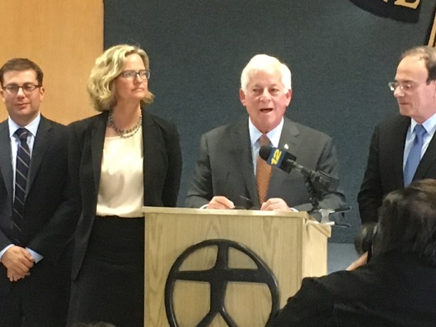 “Making sure we win in what will be a very tough election coming up against Jack Martins and the Republican machine, which is filled with this culture of corruption, it is more important that we have a united ticket and we pull it together for that purpose,” Jay Jacobs, the Nassau Democratic chairman, said Wednesday.