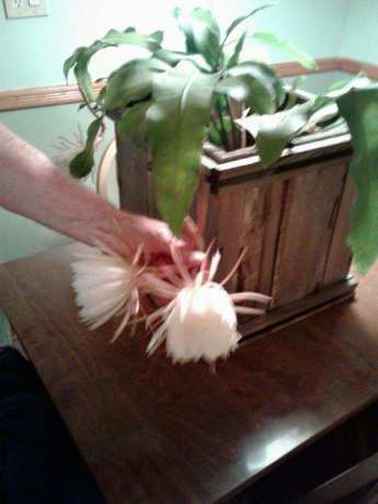 It finally opened its white exquisitely scented flowers on Monday, Oct. 1 between 9 p.m. until dawn. The plant has been tenderly cared for at Clark Botanic Garden by Jim Newman, staff horticulturist of the Fanny Dwight Memorial Garden, Inc., the non-profit arm of the Garden.