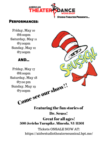 The Vivonas’ production of “Seussical” promises fun for the whole family and can be seen at 8 p.m. on Friday, May 10 and 17 and at 7 p.m. on Saturday, May 11 and 19 and Sunday, May 12 and 19. Tickets, $18 for general seating and $22 premium seating, are available by going to www.atdwstudiotheaterseussical.bpt.me.