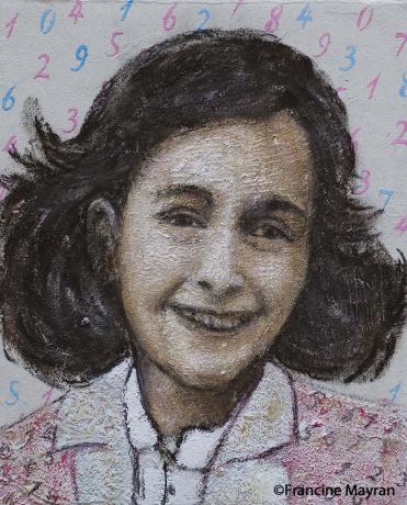 The poem is coupled with my friend’s touching portrait of Anne Frank who perished at a young age in the Bergen-Belsen concentration camp. Anne’s family fled Germany for the Netherlands when the Nazis began the wholesale persecution of German Jews.