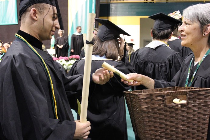 This year’s co-valedictorian Gianna Boscarino, graduating summa cum laude, gave a moving speech to her fellow graduates about the steps that brought them to where they are today. “As we grow older, finding the time to celebrate the small victories becomes harder to do. We aim high and we set ground rules for ourselves, and while of course this is not necessarily a bad thing, often times we become so focused on the bigger picture, that we forget to celebrate all the achievements we make along the way,” she said.